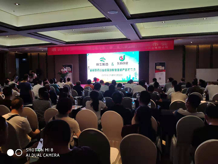 2019年6月21日,東新藥業攜手朗生醫藥在重慶召開“最新醫藥行業政策剖析及應對措施暨東新藥業重磅產品發布會”。東新藥業副董事長王老師在會上做了行業政策剖析及應對措施演講,并進行了重磅產品發布,200多位醫藥營銷專業人士參加了本次會議。