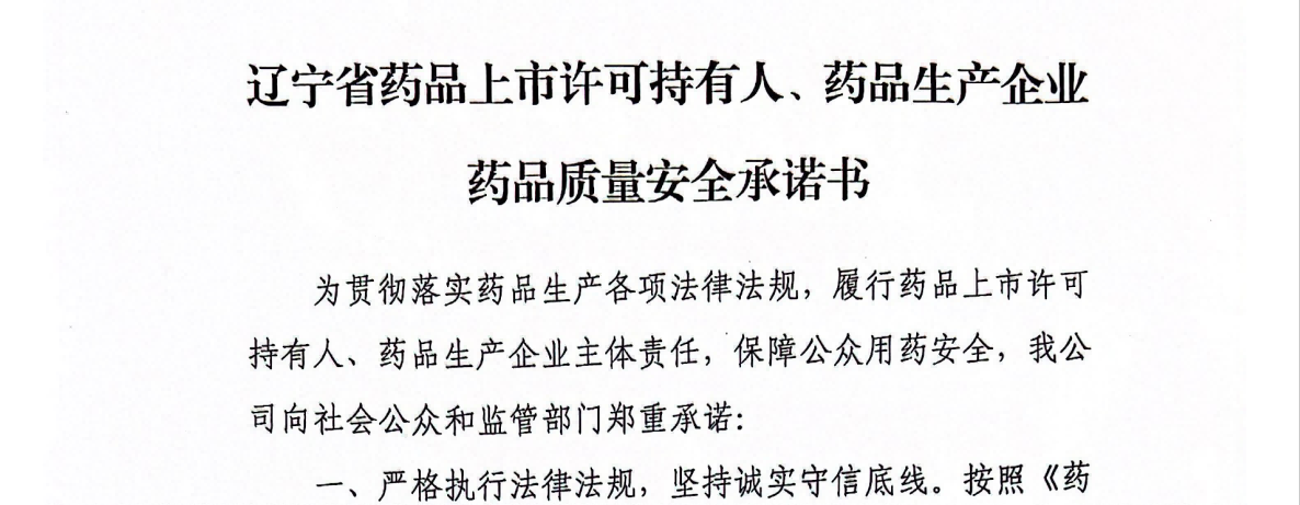 為貫徹落實藥品生產各項法律法規,履行藥品上市許可持有人、藥品生產企業主體責任,保障公眾用藥安全,我公司向社會公眾和監管部門鄭重承諾......