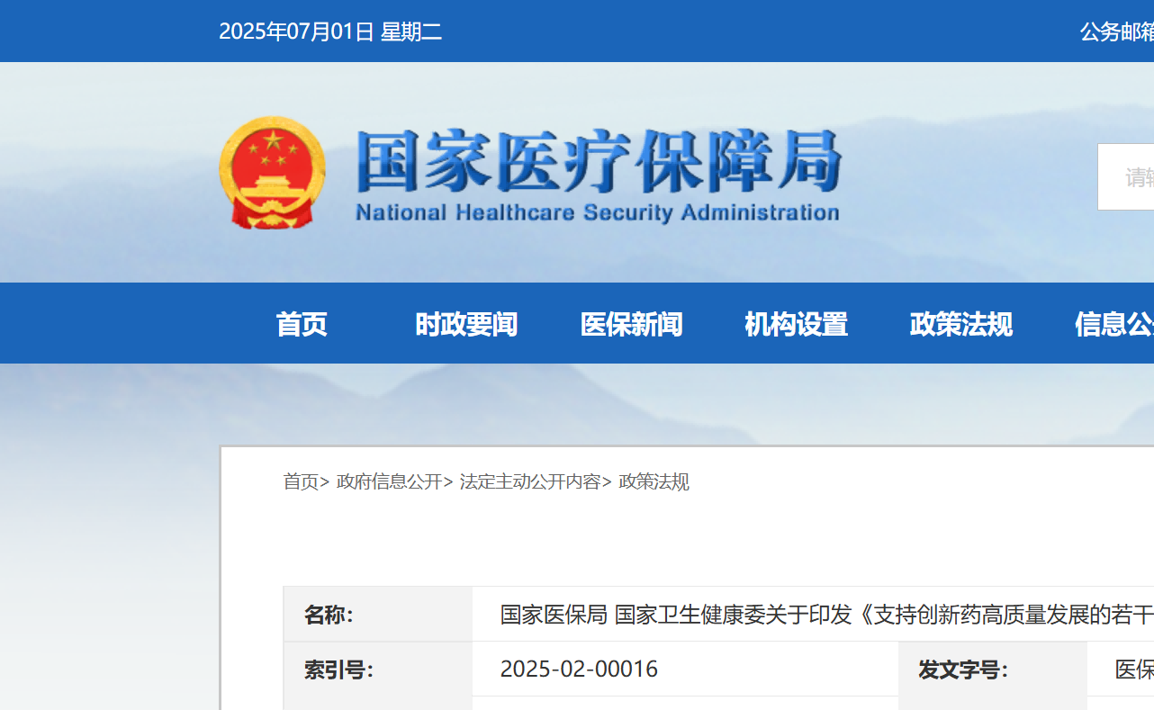 國家醫保局 國家衛生健康委關于印發《支持創新藥高質量發展的若干措施》的通知
